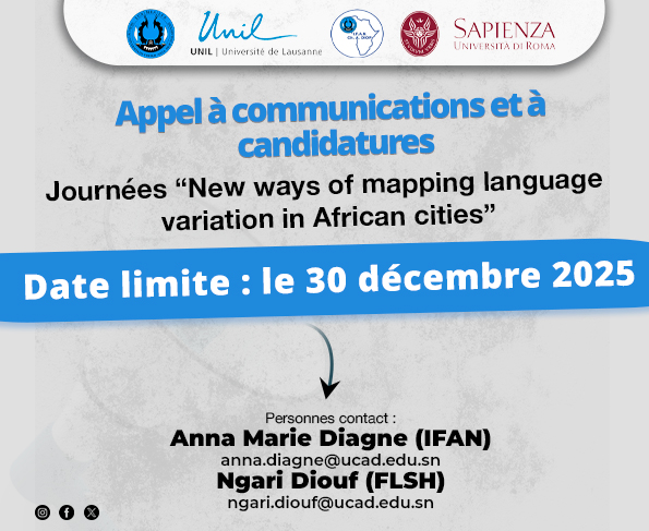 Ces journées, organisées dans le cadre de l’Alliance CIVIS, combinent deux volets complémentaires : (1) Une journée d’étude scientifique consacrée aux communications sur la variation linguistique dans les villes sénégalaises, et plus particulièrement à